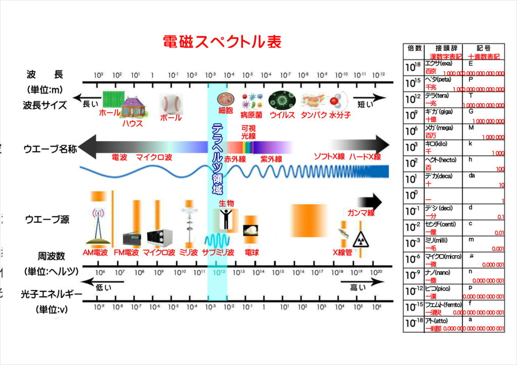 テラヘルツ(THz)波 とは、電磁波の一種です。
